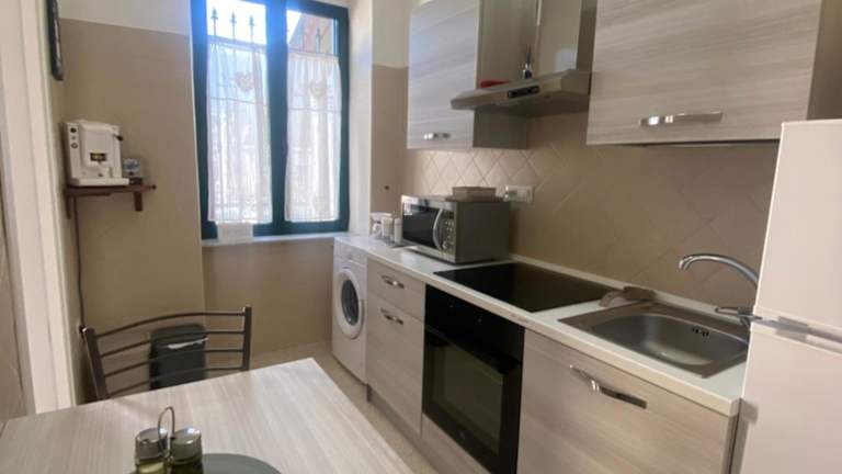 Die Ferienwohnung umfasst ein Schlafzimmer, ein Wohnzimmer sowie eine voll ausgestattete Küche, die einen Kühlschrank und eine Kaffeemaschine beinhaltet. Des Weiteren gibt es ein Badezimmer mit Bidet und Dusche. Handtücher und Bettwäsche werden bereitgestellt.