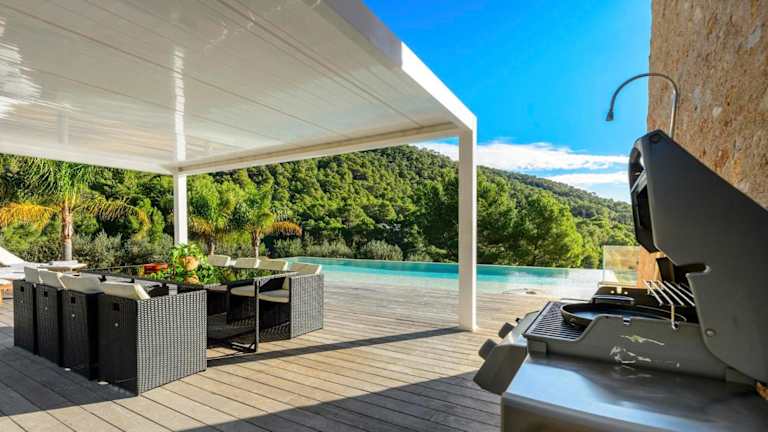 Das Ferienhaus umfasst 3 Schlafzimmer und 3 Badezimmer. Zur Ausstattung gehören Bettwäsche, Handtücher, ein Flachbild-TV und eine voll ausgestattete Küche. Zusätzlich gibt es eine Terrasse mit Blick auf die Berge.