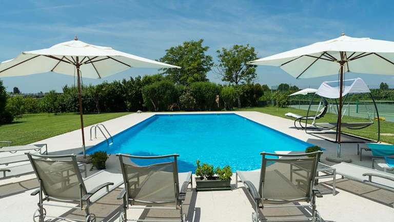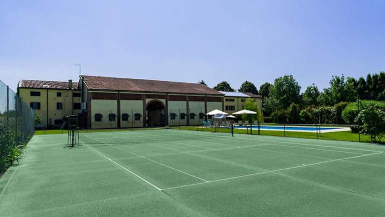 Die Unterkunft bietet einen Tennisplatz sowie die Möglichkeit, am saisonalen Außenpool zu entspannen.