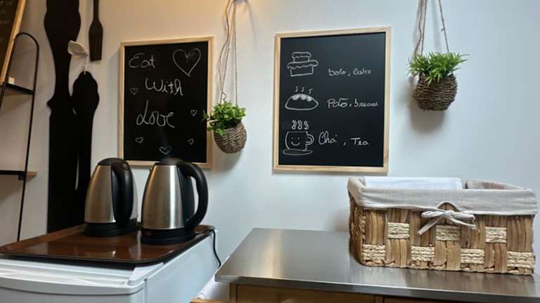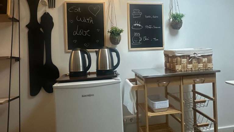 Eine sehr schöne Einrichtung, wenn man auswärts isst und nicht die Küche benutzen muss.