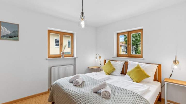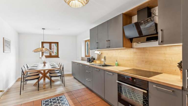 Die Ferienwohnung verfügt über drei Schlafzimmer, ein Wohnzimmer mit Flachbild-TV, eine gut ausgestattete Küche mit Kühlschrank und Geschirrspüler sowie zwei Badezimmer mit Dusche. Handtücher und Bettwäsche sind inkludiert, und die Unterkunft bietet auch allergikerfreundliche Zimmer.