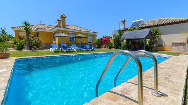 Das Casa Quintero 4 dorm Conil de la Frontera by Ruralidays in Conil de la Frontera ist eine ideale Unterkunft für einen entspannten Urlaub in der Nähe des Golfplatzes Novo Sancti Petri. Die Villa bietet geräumige Unterkünfte mit einem eigenen Pool und kostenfreiem WLAN. Genießen Sie die Terrasse und den saisonalen Außenpool. Der private Parkplatz sorgt für zusätzlichen Komfort. Die Villa verfügt über 4 Schlafzimmer, eine voll ausgestattete Küche und 2 Badezimmer. Entdecken Sie die umliegenden Sehenswürdigkeiten wie den Genoves Park und den Club de Golf Campano. Der Flughafen Jerez ist nur 59 km entfernt.