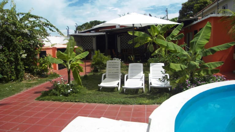Willkommen im Ferienhaus Casa Rosa Wir begruessen sie alle sehr herzlich und bedanken uns fuer Ihr Interesse an unser Ferienhaus. Unser Ferienhaus ist 500 Meter entfernt von den schönsten Strand Isla de Margaritas, umgeben von einen idyllischen Tropengarten mit einen kreisrunden Pool mit Dusche und WC. Eine ca. 20 m² großen Terasse, ein Grill befindet sich gleich daneben der abends zum Fisch grillen einlädt. Die Anlage verfügt über 430 m² Wohnfläche mit 8 Zimmern, jedes Gästezimmer ist mit Kühlschrank, Safe, Fernseher, Satellitenanschluss für internationales und deutsches Fernsehen (98 Programme), Klimaanlage, Bad mit Warmwasser ausgestattet Auf dem Grundstück unseres Ferienhauses bieten wir unseren Gästen an, Wi-Fi Internetverbindung kostenlos zu nutzen. (Nemen Sie Ihren Laptop mit) Ein 30 m² Wohnzimmer mit komfortabler Ledersitzecke und einen großen Esstisch mit 6 Sitzplätze bietet unseren Urlaubern zusätzlich noch genügend Raum um für sich alleine zu sein. Eine offene Küche schließt sich dem Wohnzimmer an, mit großer Einbauchküche, mit allem, was Sie zur Selbstversorgung benötigen, ein Gefriertruhe, Microwelle, Toaster, Kaffeemaschine, Mixer. Außerdem hat das Ferienhaus eine eigene Wäscherei. Unser Ferienhaus Casa Rosa liegt im Norden der Insel, ist 25 km von der Shoppingmeile Porlamar entfernt. In weniger als 10 Minuten erreichen Sie die umliegenden Strände, wie Playa Parguito und Playa Manzanillo z.B. mit dem Bus oder Taxi. Einkaufscenter, Bäckerei, Bank, Apotheken, Souvenirshops, Cafe und Restaurants verschiedener Nationalitäten sowie Autovermietungen befinden sich in unmittelbarer Nähe und sind gut zu Fuß zu erreichen. (Parque Aqua) Aquapark mit seinen riesigen Wasserrutschen ist nur 3 km entfernt. Wir bieten unseren Gästen an sie 1 X pro Woche zu einen großen Supermarkt zu fahren um einzukaufen und wir machen auch eine Shoppingtour um günstige Bekleidung zu kaufen. Außerdem empfehlen wir Ihnen die besten Restaurants und zeigen Ihnen die verschiedenen Strände. Abends lassen Sie sich vom typischen Nightlife in den Strandbars mit Lifemusik verwöhnen oder genießen Discotheken-, Nachtbar- und Casinotripps durch Porlamar.