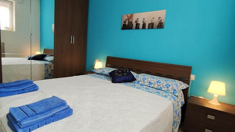 Die Ferienwohnung bietet zwei Schlafzimmer, ein Wohnzimmer und eine voll ausgestattete Küche mit Kühlschrank und Kaffeemaschine. Zusätzlich sind ein Badezimmer mit Bidet und Dusche sowie Handtücher und Bettwäsche vorhanden.