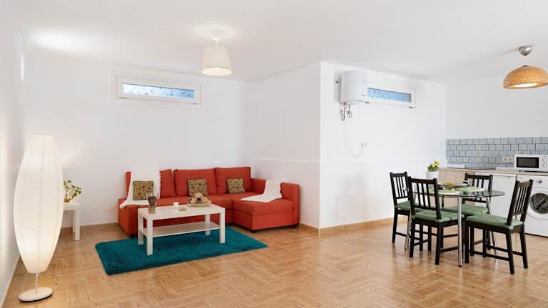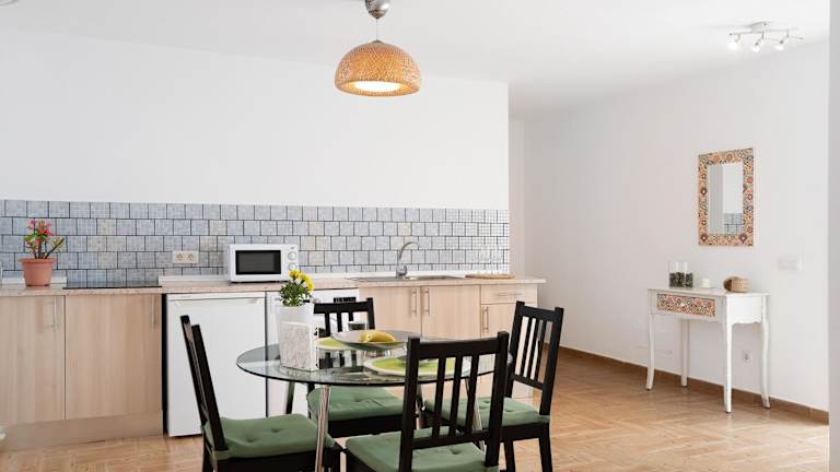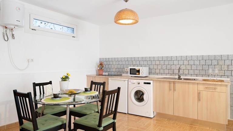 Die Ferienwohnung verfügt über ein Schlafzimmer, eine Küche mit Kühlschrank und Mikrowelle sowie ein Badezimmer mit Dusche und kostenlosen Pflegeprodukten. Handtücher und Bettwäsche werden bereitgestellt.