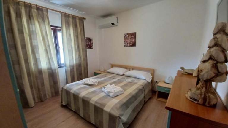 Die Ferienwohnung besteht aus zwei Schlafzimmern, einem Wohnzimmer und einer voll ausgestatteten Küche, die mit einem Kühlschrank und einer Kaffeemaschine ausgestattet ist. Des Weiteren gibt es ein Badezimmer mit Bidet und Dusche. Handtücher und Bettwäsche werden bereitgestellt. Eine Veranda oder ein Patio ist ebenfalls vorhanden.