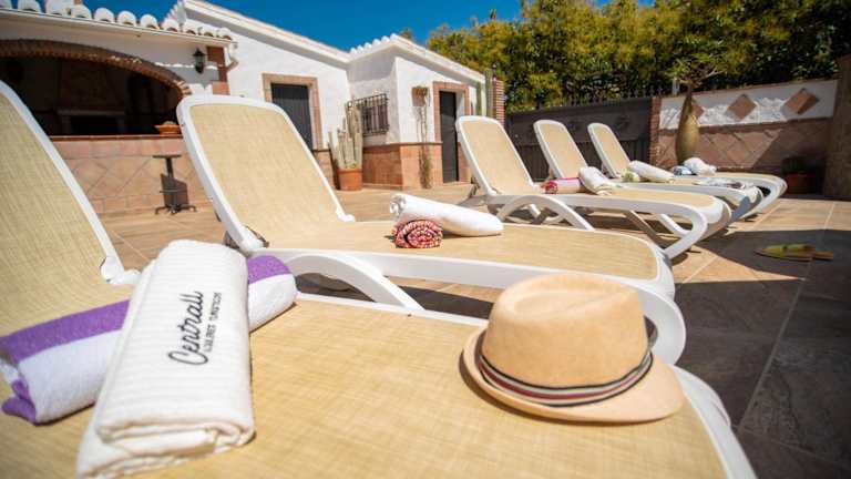 Casa rural en Nerja Villa RuiSol by Centrall alquileres turísticos bietet Übernachtungsmöglichkeiten mit kostenlosem WLAN, Klimaanlage und einem Außenpool. Die Villa ist mit 3 Schlafzimmern, einem Badezimmer sowie Bettwäsche und Handtüchern ausgestattet und bietet einen Blick auf das Meer und die Berge. Eine Terrasse mit Stadtblick ist ebenfalls vorhanden, ebenso wie Grillmöglichkeiten.