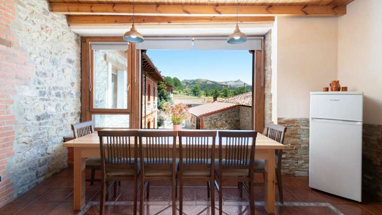 Das Casa Rural Solapeña besteht aus drei unabhängigen Landhäusern, die alle mit traditionellen Elementen wie freiliegenden Steinwänden und Holzdecken ausgestattet sind. Jedes Haus verfügt über ein gemütliches Wohnzimmer mit einem Kamin, einem Sofa und einem TV. Die Küche ist komplett ausgestattet, so dass Sie Ihre eigenen Mahlzeiten zubereiten können. Die Unterkunft bietet auch eine überdachte Terrasse mit einem Esstisch, wo Sie die schöne Aussicht auf die Picos de Europa genießen können. Für Ihren Komfort gibt es auch eine private Garage mit Platz für bis zu 7 Fahrzeuge.