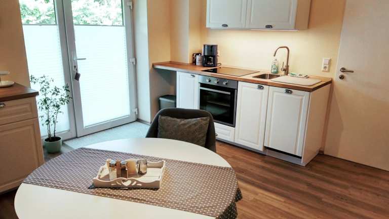 Die Ferienwohnung beinhaltet ein Schlafzimmer und ein Badezimmer sowie eine voll ausgestattete Küche, einen Essbereich und einen Flachbild-TV. Die Terrasse bietet einen Blick auf den Garten. Bettwäsche und Handtücher werden bereitgestellt und sind gemäß den Richtlinien der örtlichen Behörden gereinigt.