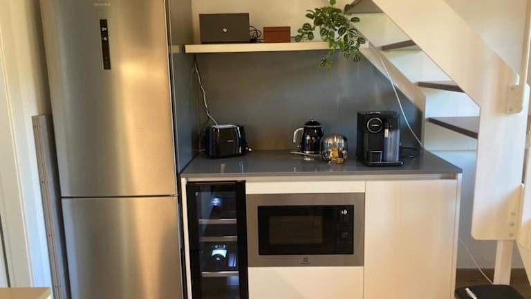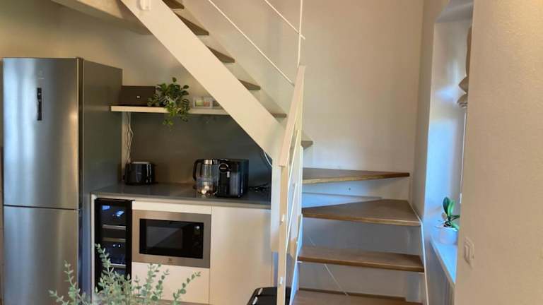 Die Ferienwohnung verfügt über einen Balkon mit Gartenblick, ein Schlafzimmer, ein Wohnzimmer sowie einen Kabel Flachbild-TV. Zusätzlich ist eine gut ausgestattete Küche vorhanden, und das Badezimmer ist mit einem Bidet und einer Dusche ausgestattet. Handtücher und Bettwäsche werden bereitgestellt.