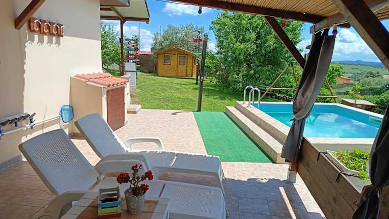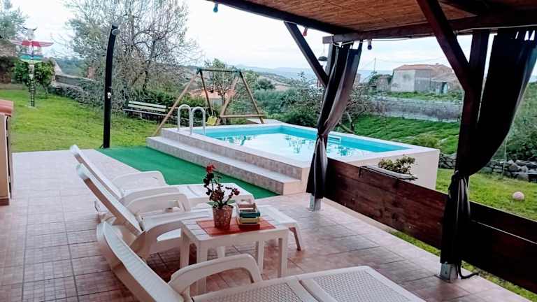 Verbringen Sie einen erholsamen Urlaub im Casa Vacanze JANAS I.U.N P3605 in Ruinas. Genießen Sie den saisonalen Außenpool, das Fitnesscenter und den schönen Garten. Das Ferienhaus bietet Ihnen Komfort und Annehmlichkeiten wie eine Terrasse mit Poolblick, 2 Schlafzimmer, ein gemütliches Wohnzimmer und eine voll ausgestattete Küche. Parkplätze stehen kostenlos zur Verfügung. In der Umgebung können Sie angeln und der Flughafen Cagliari ist nur 89 km entfernt.