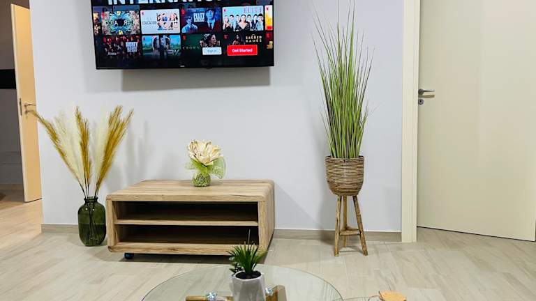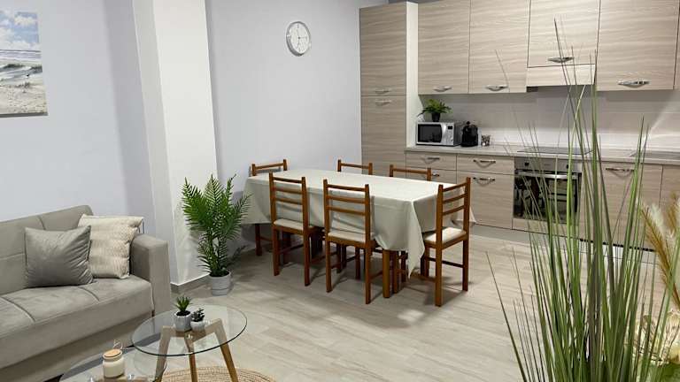 Die Ferienwohnung umfasst zwei Schlafzimmer, ein Wohnzimmer und eine voll ausgestattete Küche mit Kühlschrank und Kaffeemaschine. Es gibt zwei Badezimmer, die mit einem Bidet und einer Dusche ausgestattet sind. Handtücher und Bettwäsche werden zur Verfügung gestellt. Die Unterkunft verfügt über Klimaanlage und ist für Familien geeignet.