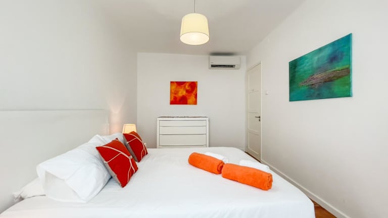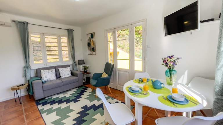 Das Ferienhaus umfasst zwei Schlafzimmer, ein Wohnzimmer, eine voll ausgestattete Küche mit Kühlschrank und Kaffeemaschine sowie ein Bad mit Dusche und Haartrockner. Handtücher und Bettwäsche werden bereitgestellt. Die Unterkunft ist klimatisiert und bietet auch eine Terrasse. Für die Reinigung und Hygiene wird auf die Richtlinien der örtlichen Behörden geachtet.