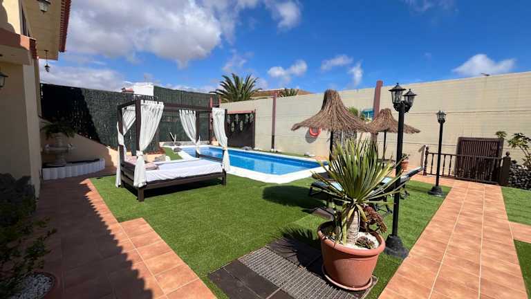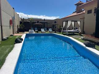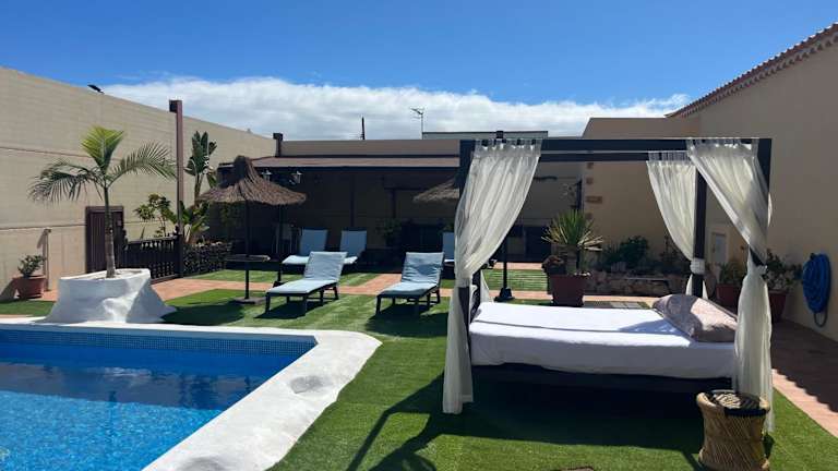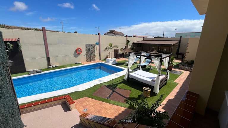 Das Casa Villa Tenerife in Las Galletas ist ein klimatisiertes Ferienhaus mit eigenem Außenpool, Terrasse und Garten. Die Unterkunft bietet einen herrlichen Blick auf den Pool und liegt nur 7 km von Playa de las Américas entfernt. WLAN steht Ihnen in allen Bereichen kostenfrei zur Verfügung. Das Ferienhaus verfügt über eine gut ausgestattete Küche mit Geschirrspüler und Backofen sowie ein eigenes Badezimmer. Handtücher und Bettwäsche werden gestellt. Ein ganzjährig geöffneter Außenpool rundet das Angebot ab. In der Umgebung können Sie Aktivitäten wie Golfspielen, Windsurfen und Tauchen nachgehen. Der Flughafen Teneriffa Süd ist nur 9 km entfernt.