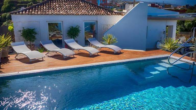 Das Casa Viña ist eine spektakuläre Villa, die Ihnen einen erholsamen Urlaub fernab von allem bietet. Mit einem atemberaubenden Bergblick, einem Außenpool und einer Terrasse können Sie hier die Ruhe und Schönheit der Umgebung genießen. Die Villa verfügt über 3 Schlafzimmer, ein geräumiges Wohnzimmer und eine gut ausgestattete Küche. Handtücher und Bettwäsche werden gestellt und der Whirlpool bietet zusätzliche Entspannung. Die Villa liegt in der Nähe des Botanischen Gartens, des Taoro Parks und der Plaza Charco. Der Flughafen Teneriffa Nord-Ciudad de La Laguna ist ebenfalls leicht zu erreichen.