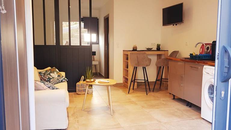 Die Ferienwohnung verfügt über ein Schlafzimmer sowie eine voll ausgestattete Küche, die mit einem Kühlschrank, einem Ofen, einer Waschmaschine, einer Mikrowelle und einer Herdplatte ausgestattet ist. Ein Flachbild-TV ist ebenfalls vorhanden, und das WLAN ist kostenfrei.
