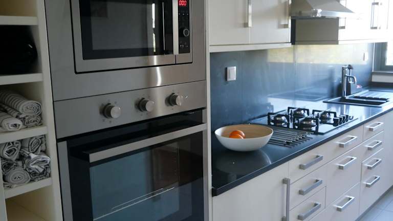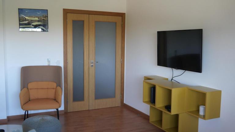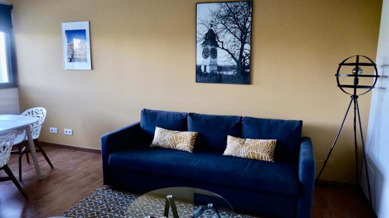 Die Ferienwohnung umfasst ein Schlafzimmer und ein Badezimmer. Zur Ausstattung gehören Bettwäsche, Handtücher, ein Flachbild-TV, ein Essbereich und eine voll ausgestattete Küche. Zudem gehört eine Terrasse mit Stadtblick zur Wohnung.