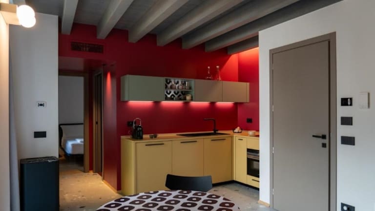 Wohnung Lago IDEAL FÜR 2 PERSONEN 70 M2 PURE MAGIE Elegante Kontraste Die Wohnung Lago ist ein Lobgesang der Eleganz und des einzigartigen Stils. Die Einrichtung, die ausschließlich von LAGO stammt, schafft eine einzigartige, edle Atmosphäre, die moderne und historische Elemente miteinander verbindet. In diesem eleganten Wohnraum, der aus einer Wohnküche, einem Badezimmer und einem Schlafzimmer mit Doppelbett besteht, sind alle Materialien von hoher Qualität und sorgfältig ausgewählt, um Ihnen ein unvergleichliches Luxuserlebnis zu bieten Wohnung Deco IDEAL FÜR 2 PERSONEN 40 M2 PURE MAGIE Eklektisch und hell Die Wohnung Deco orientiert sich an eleganter Kunst und raffinierten Dekorationen. Tauchen Sie ein in die dekorative Kunst der hellsten Wohnung von Casaorti, die aus einem Wohnzimmer mit offener Küche, einer kleinen Terrasse und einem Duschbad mit Blick auf das Schlafzimmer mit Doppelbett besteht. Entfesseln Sie Ihre Lust auf Kreativität. Wohnung Olio IDEAL FÜR 2 PERSONEN 45 M2 PURE MAGIE Romantischer Alkoven Ein ungewöhnlicher Garten wird an den Wänden jedes Zimmers zum Leben erweckt und bietet in dieser kleinen, schlichten Wohnung eine unmittelbare Verbindung zur Natur. Die Wohnküche in leuchtenden Farben geht in ein komfortables Badezimmer über und ist durch eine Glastür mit einem eleganten Doppel-Himmelbett verbunden, dem eigentlichen Star des Schlafzimmers. Wohnung Nido IDEAL FÜR 2 PERSONEN 85 M2 PURE MAGIE Wesentlicher Luxus Zwischen den Dächer des Dorfes ganz oben in der Anlage befindet sich Nido, ein gemütliches und raffiniertes Penthouse mit einer Aussicht auf tausendjährige Geschichte. Das geräumige Dachgeschoss beherbergt eine bedeutende Küche mit Blick auf das Schloss Arco, während das große Wohnzimmer in den Schlafbereich führt, wo das Hästens-Doppelbett und eine freistehende Badewanne Wohlbefinden und Entspannung versprechen.