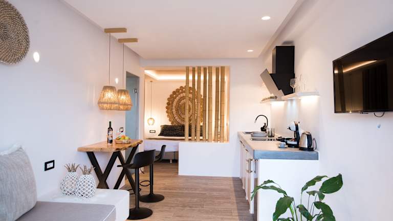 Das Hotel Case di Venia liegt nur 400 m vom Strand Agia Anna und 500 m vom Strand Kalafatis entfernt. Diese beiden Strände sind perfekt für Sonnenanbeter und Wassersportler, da sie schöne Sandstrände und klares Wasser bieten. Die Umgebung des Hotels ist ruhig und entspannend, ideal für einen erholsamen Urlaub. In der Nähe befinden sich auch andere beliebte Strände wie Loulos. Die Windmühlen von Mykonos sind ebenfalls einen Besuch wert und nur 11 km entfernt.
