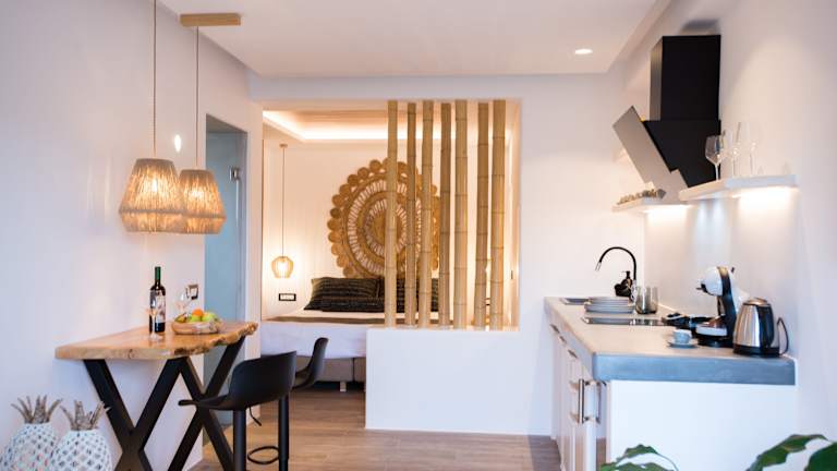 Das Hotel Case di Venia in Agia Anna ist der perfekte Ort für einen entspannten Strandurlaub. Mit seiner günstigen Lage in der Nähe der Strände Agia Anna und Kalafatis bietet das Hotel komfortable Unterkünfte mit kostenfreiem WLAN und einem herrlichen Meerblick. Die klimatisierten Zimmer verfügen über eine voll ausgestattete Küche, einen Flachbild-TV und ein eigenes Bad. Der Strand Loulos ist nur 1,2 km entfernt und die Windmühlen von Mykonos erreichen Sie nach einer kurzen Fahrt. Der Flughafen Mykonos ist ebenfalls in der Nähe und das Hotel bietet einen praktischen Flughafentransfer.