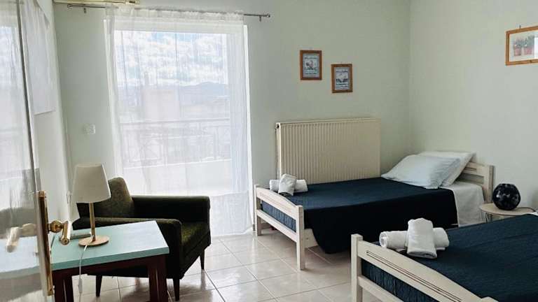 Die Unterkunft liegt in Loutraki, in der Nähe des Strandes Loutraki, welcher 900 Meter entfernt ist. Der Strand von Neraida ist 3 Kilometer entfernt. Der nächstgelegene Flughafen ist der Flughafen Athen-Eleftherios Venizelos, der eine Entfernung von 109 Kilometern zur Unterkunft hat.