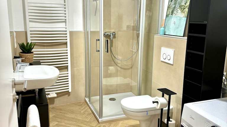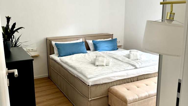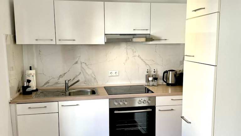 Die Ferienwohnung verfügt über ein Schlafzimmer, ein Wohnzimmer, einen Flachbild-TV sowie eine gut ausgestattete Küche mit Kühlschrank und Geschirrspüler. Darüber hinaus steht ein Badezimmer mit Dusche zur Verfügung. Handtücher und Bettwäsche werden bereitgestellt.