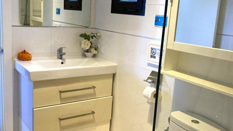 Die Ferienwohnung verfügt über zwei Schlafzimmer, ein Wohnzimmer und eine voll ausgestattete Küche, die mit einem Kühlschrank und einer Kaffeemaschine ausgestattet ist. Zusätzlich gibt es ein Badezimmer mit Dusche und Haartrockner. Handtücher und Bettwäsche werden bereitgestellt. Die Unterkunft ist klimatisiert.