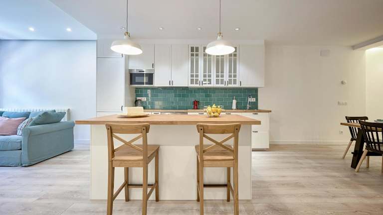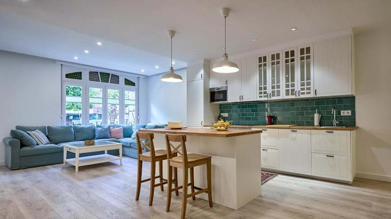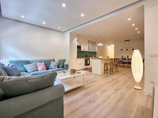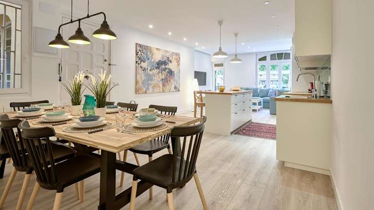 Die Ferienwohnung umfasst 4 Schlafzimmer, ein Wohnzimmer mit Flachbild-TV, eine gut ausgestattete Küche mit Kühlschrank und Geschirrspüler sowie 2 Badezimmer mit Badewanne oder Dusche. Handtücher und Bettwäsche werden bereitgestellt.