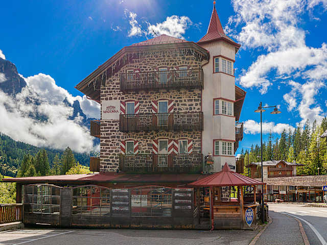 Die Castel Madonna befindet sich im Zentrum von San Martino di Castrozza, einer charmanten Stadt in den italienischen Alpen. In unmittelbarer Nähe finden Sie eine Vielzahl von Geschäften, Bars und Restaurants. Der Skibus hält direkt vor dem Hotel und bietet eine bequeme Anbindung zu den Skigebieten Passo Rolle und San Martino di Castrozza. Die Unterkunft liegt etwa 50 Fahrminuten von Canazei entfernt.