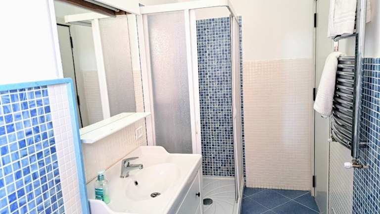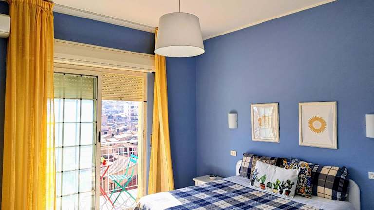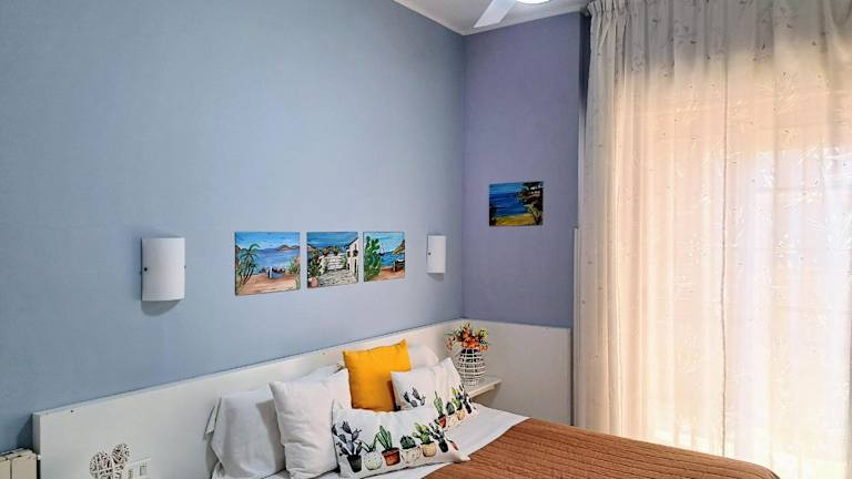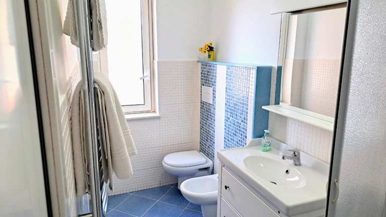Das Apartment im Appartamento Mediterraneo verfügt über einen Balkon mit Meerblick, der perfekt ist, um die Aussicht zu genießen. Das Apartment bietet auch einen gemütlichen Sitzbereich und eine gut ausgestattete Küche mit einem Kühlschrank. Ein Flachbild-TV steht ebenfalls zur Verfügung. Das Apartment verfügt über ein eigenes Bad und ein zusätzliches WC mit einer Waschmaschine für zusätzlichen Komfort. Das erste Schlafzimmer ist klimatisiert, während das zweite Schlafzimmer und der Wohnbereich mit einem professionellen Deckenventilator ausgestattet sind, wie auf den Fotos zu sehen ist.