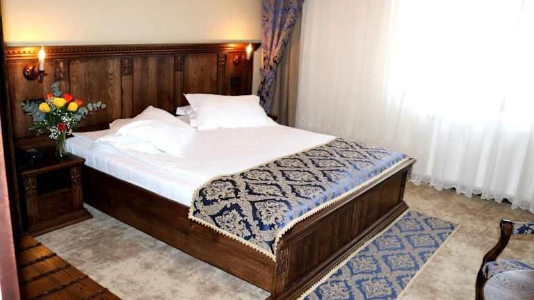 Das Hotel Castel Transilvania in Baia Mare bietet Ihnen einen unvergesslichen Aufenthalt in einem mittelalterlichen Schloss. Genießen Sie die atemberaubende Aussicht auf Baia Mare von den Außenpools aus und lassen Sie sich von der einzigartigen Atmosphäre verzaubern. Das Hotel bietet zudem ein Restaurant, einen Nachtclub, einen Konferenzraum und komfortable Zimmer. Nutzen Sie auch die Wellness-Einrichtungen und bleiben Sie beim Tischtennis aktiv. Die Lage des Hotels ermöglicht es Ihnen, die Stadt Baia Mare und die Umgebung bequem zu erkunden.