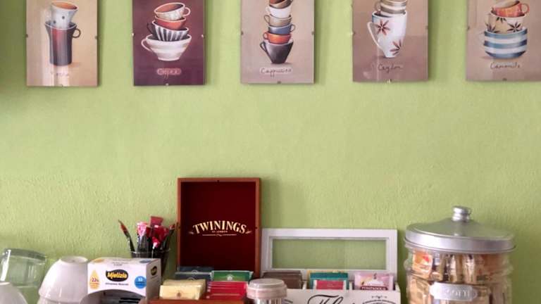 Das Frühstück wird in Buffetform in einem kleinen Frühstücksraum serviert. Hier können Sie traditionelle süße Speisen und heißen Kaffee genießen und sich so optimal für den Tag stärken.