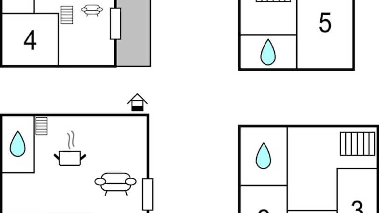 Das Ferienhaus umfasst fünf Schlafzimmer, ein Wohnzimmer, eine voll ausgestattete Küche mit Kühlschrank und Kaffeemaschine sowie fünf Badezimmer mit Dusche. Zusätzlich ist ein TV vorhanden.