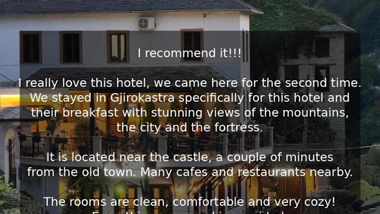 Das Castle Hotel befindet sich in Gjirokastra, 44 km vom Zaravina See entfernt. Die Lage der Unterkunft ermöglicht Zugang zu verschiedenen lokalen Attraktionen.