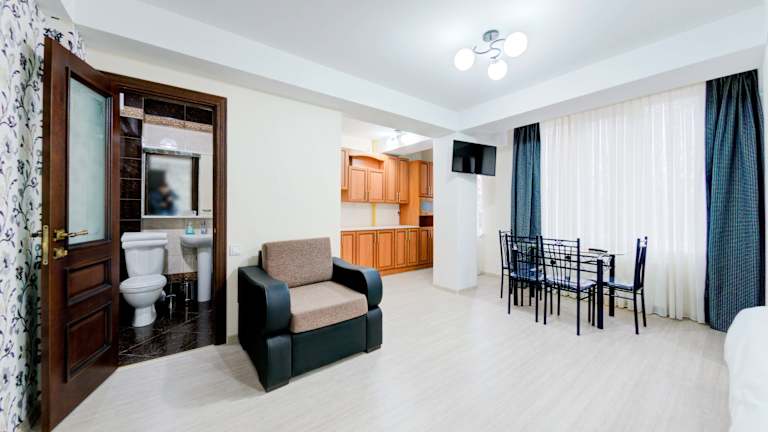 Das Catherine Hotel liegt nur 1,9 km vom Botanischen Garten Dendrarium Chisinau entfernt, was es zu einem idealen Ausgangspunkt für Naturliebhaber macht. Die Moldexpo und der Stefan The Great City Park sind ebenfalls leicht zu erreichen. Der internationale Flughafen Chișinău befindet sich nur 18 km entfernt, sodass Sie schnell und bequem in Ihr Hotel gelangen können.