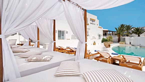 Erleben Sie einen unvergesslichen Aufenthalt im Cavo Bianco Boutique Hotel & Spa in Kamari. Das Hotel besticht durch seinen kykladischen Stil, einen schönen Pool und eine Sonnenterrasse. Genießen Sie die traditionelle Küche im hoteleigenen Restaurant und entspannen Sie im Wellnesscenter. Die modernen Zimmer bieten einen Balkon oder eine Terrasse mit herrlichem Ausblick. Das freundliche Personal steht Ihnen jederzeit zur Verfügung und hilft Ihnen gerne bei der Organisation von Ausflügen. Die Lage des Hotels ermöglicht es Ihnen, die archäologische Stätte des antiken Thera und andere Sehenswürdigkeiten in der Umgebung zu erkunden.