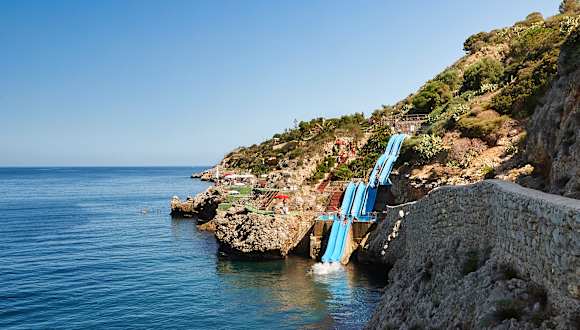 Eingebettet in einen 27 Hektar großen Park mit Olivenbäumen, Kakteen, Feigenkakteen und üppiger mediterraner Macchia bietet sich den Gästen ein Panorama von unvergleichlicher Schönheit am Golf von Castellammare. Fast alle Zimmer, großen Terrassen, Swimmingpools, Restaurants und Bars fügen sich harmonisch in die zum Meer hin abfallende Klippe ein und bieten einen atemberaubenden Ausblick. CDSHotels Terrasini ist eine der bekanntesten sizilianischen Unterkunftseinrichtungen und ein Bezugspunkt für Italiener und Gäste aus aller Welt auf der Insel. Seine strategische Lage ermöglicht es Ihnen, viele Stätten von hohem historischem, naturalistischem und kulturellem Wert leicht zu erreichen. Um das Angebot zu vervollständigen, gibt es die „Toboggan“: eine der 10 berühmtesten Wasserrutschen der Welt und des höchsten Europas in einem Ferienresort, welche im Meer endet; 4 Rutschenreihen auf der Klippe über dem Golf von Castellammare, die 3 Becken mit Meerwasser durchqueren und im kristallklaren Wasser des Golfs enden. CDSHotels Terrasini ist die ideale Struktur für einen privilegierten Urlaub zwischen Natur, Entspannung und Spaß.