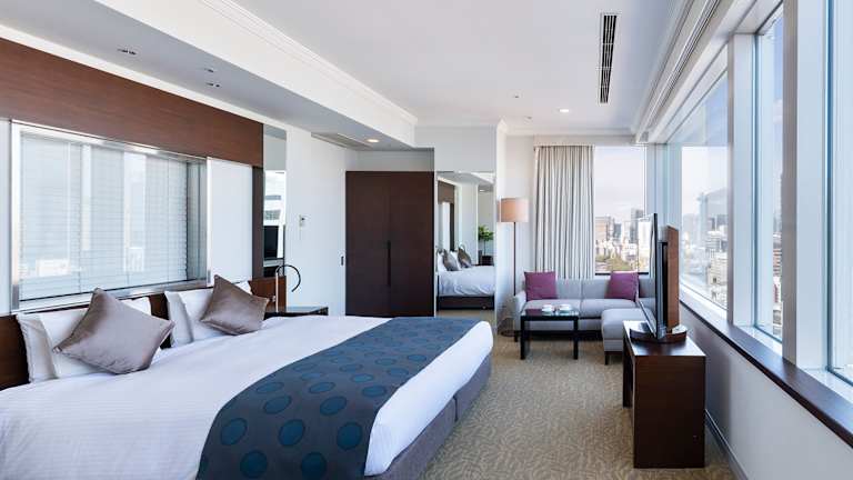 Die 243 Zimmer des Hotels sind elegant gestaltet und bieten einen atemberaubenden Blick auf die Stadt. Die Zimmer sind mit kostenfreiem WLAN, einem Flachbild-TV, einer Minibar und einer Tee-/Kaffeemaschine ausgestattet. Einige Zimmer verfügen über ein separates Wohnzimmer und eine Kitchenette. Die Badezimmer sind modern und bieten eine Dusche, eine Badewanne, Hausschuhe und Pflegeprodukte. Für zusätzlichen Komfort steht ein Zimmerservice zur Verfügung.