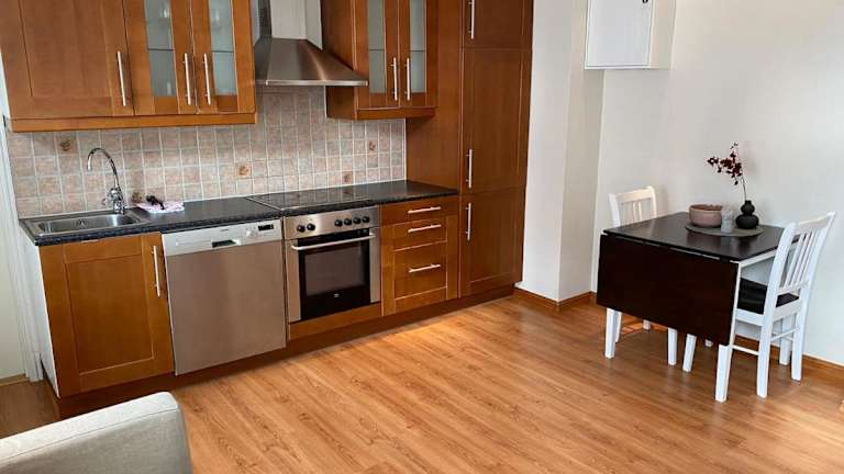 Central bus station apt D14C bietet eine moderne Unterkunft mit einem Schlafzimmer und einer kompletten Küche, die mit Kühlschrank, Geschirrspüler und Waschmaschine ausgestattet ist. Zusätzlich stehen ein Badezimmer mit kostenlosen Pflegeprodukten und einem Haartrockner zur Verfügung.