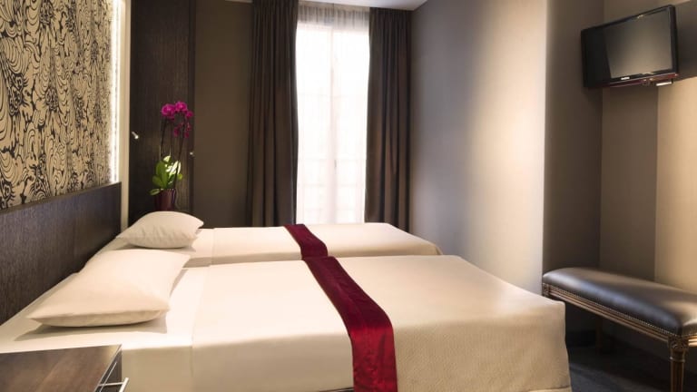Die Zimmer im Central Hotel Paris sind komfortabel und bieten alles, was Sie für einen angenehmen Aufenthalt benötigen. Jedes Zimmer verfügt über ein eigenes Bad, einen Sat-TV, ein Telefon und einen Schreibtisch. Die Badezimmer sind mit einer Dusche oder Badewanne ausgestattet. Der Aufzug ermöglicht einen einfachen Zugang zu allen Zimmern. Kostenloses WLAN ist in allen Bereichen des Hotels verfügbar.