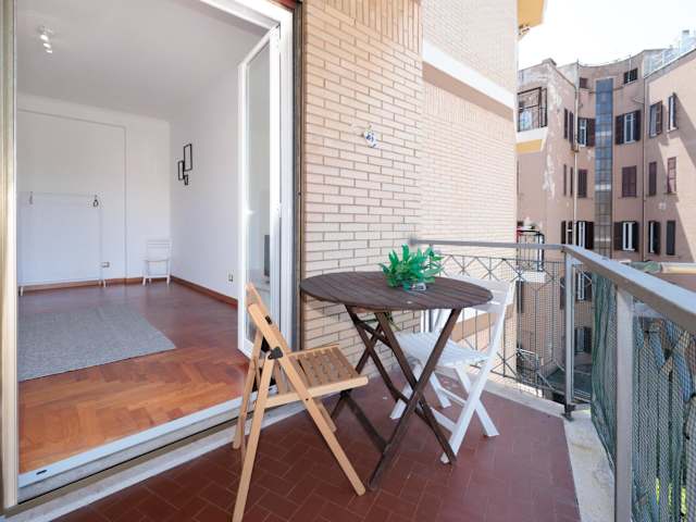 Die Ferienwohnung umfasst ein Schlafzimmer und ein Wohnzimmer. Zudem steht eine voll ausgestattete Küche mit Kühlschrank und Kaffeemaschine zur Verfügung. Das Badezimmer ist mit einem Bidet und einer Badewanne ausgestattet. Handtücher und Bettwäsche werden bereitgestellt.