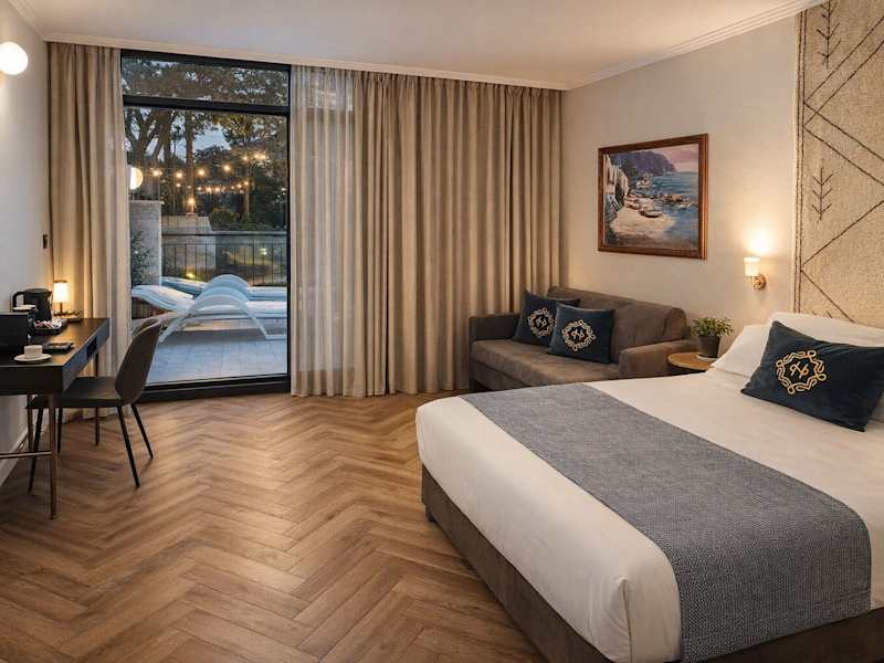 Das Hotel bietet 170 Zimmer auf 4 Etagen, die alle mit einem Aufzug erreichbar sind. Die Zimmer sind klimatisiert und verfügen über Annehmlichkeiten wie einen Safe, eine Minibar und eine Kaffeemaschine. Einige Zimmer verfügen auch über einen Balkon oder eine Terrasse.