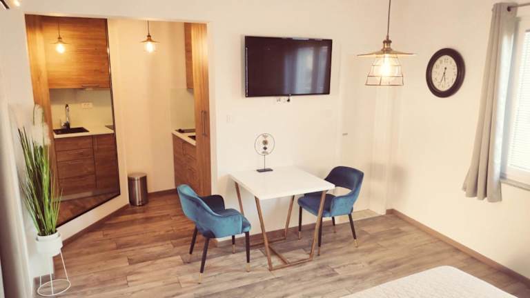 Die Central Park Suites in Vodice bieten komfortable Unterkünfte mit kostenfreiem WLAN und Parkplätzen in der Nähe. Die Apartments sind modern ausgestattet und verfügen über eine Terrasse, einen Sitzbereich, einen Flachbild-Kabel-TV und eine voll ausgestattete Küchenzeile. Jeden Morgen können Sie ein köstliches kontinentales, vegetarisches oder veganes Frühstück genießen. Die Umgebung lädt zum Radfahren ein und der Strand Hangar Beach ist nur 1,4 km entfernt. Für weitere Erkundungen können Sie das Rathaus von Šibenik besuchen, das 13 km entfernt liegt. Der Flughafen Zadar ist 64 km entfernt, und die Unterkunft bietet einen kostenpflichtigen Flughafentransfer.