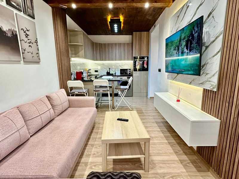 Die Ferienwohnung besteht aus 2 Schlafzimmern, einem Wohnzimmer und einer voll ausgestatteten Küche, die mit einem Kühlschrank und einer Kaffeemaschine ausgestattet ist. Des Weiteren gehört ein Badezimmer mit Bidet und Dusche zur Ausstattung. Handtücher und Bettwäsche werden bereitgestellt.