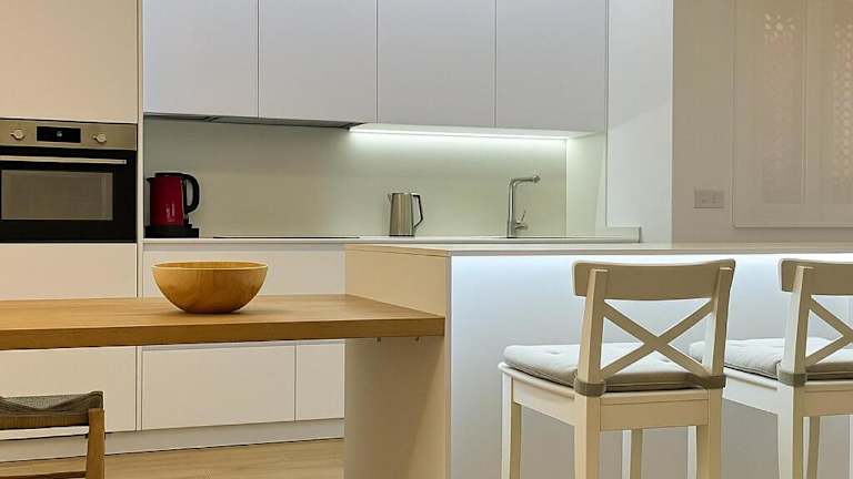 Die Ferienwohnung umfasst zwei Schlafzimmer, ein Wohnzimmer und eine voll ausgestattete Küche, die mit einem Kühlschrank und einer Kaffeemaschine ausgestattet ist. Sie bietet zudem zwei Badezimmer, ausgestattet mit einem Bidet sowie einer Badewanne oder Dusche. Handtücher und Bettwäsche werden bereitgestellt.