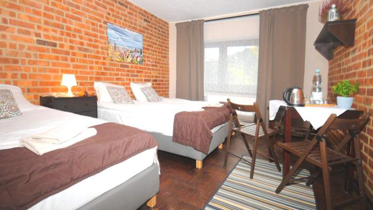 Die Zimmer im Centrum Turystyki Niekonwencjonalnej sind einfach, aber gemütlich eingerichtet. Sie verfügen über unverputzte Ziegelwände und dunkle Holzmöbel, die eine rustikale Atmosphäre schaffen. Jedes Zimmer verfügt über ein eigenes Bad mit Dusche und kostenloses Mineralwasser steht zur Verfügung. WLAN ist in allen Bereichen kostenlos verfügbar.