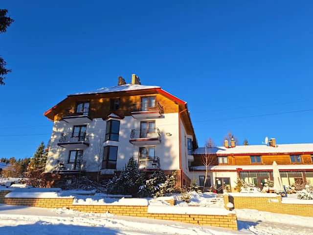 Das Centrum Wypoczynkowo - Konferencyjne Bogdanka w Kalnicy in Wetlina ist die ideale Unterkunft für einen erholsamen Aufenthalt inmitten der Natur. Hier können Sie sich in gemütlichen Zimmern entspannen und die atemberaubende Umgebung genießen. Das Hotel bietet auch eine Vielzahl von Aktivitäten wie Tischtennis, Wandern und Skifahren. Lassen Sie sich von der 24-Stunden-Rezeption und dem kostenfreien WLAN verwöhnen und starten Sie jeden Tag mit einem leckeren vegetarischen Frühstück.