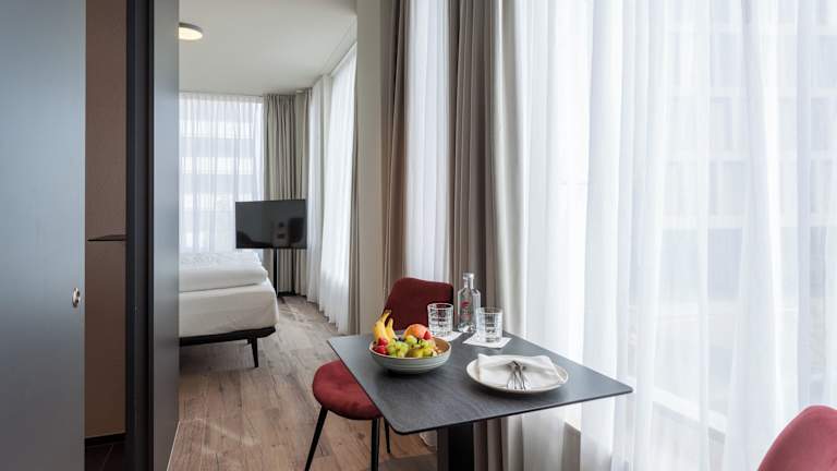 Die Zimmer sind mit einem Doppelbett und einem Sofabett ausgestattet. Zustellbetten sind auf Anfrage erhältlich. Zur Ausstattung gehören ein Telefon, kostenloses WLAN, ein Flachbild-TV sowie ein eigenes Badezimmer. Rollstuhlgerechte Zimmer sind ebenfalls buchbar. Die Unterkunft bietet Nichtraucher- und Familienzimmer an.