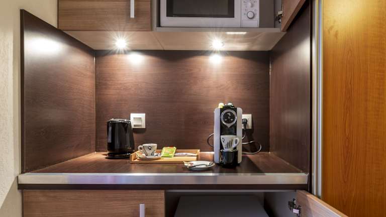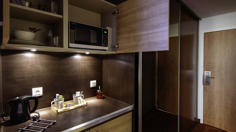 Die Wohneinheiten verfügen über ein eigenes Badezimmer mit Badewanne, Klimaanlage, Flachbild-TV, Kühlschrank, Mikrowelle, Kaffeemaschine und Wasserkocher.