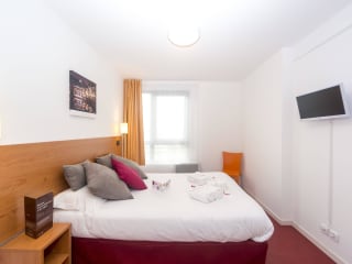 Einzelbett Studio Ausführliche Beschreibung: Studio von 18 qm mit voll ausgestatteter Küchenzeile, Schreibtisch und Schlafnische mit Einzelbett. Babybetten stehen für dieses Studio nicht zur Verfügung. Bad mit Dusche und WC sowie kostenfreiem WLAN und Canal + Sat-Kanälen. Studio mit 2 Einzelbetten Ausführliche Beschreibung: Studio von 18 qm mit voll ausgestatteter Küchenzeile, Schreibtisch und Schlafnische mit 2 Einzelbetten. Babybetten stehen für dieses Studio nicht zur Verfügung. Bad mit Dusche und WC sowie kostenfreiem WLAN und Canal + Sat-Kanälen. Studio für ein Doppelbett Ausführliche Beschreibung: 18 m² großes Studio mit voll ausgestatteter Küchenzeile, Schreibtisch und Schlafnische mit Doppelbett. Babybetten stehen für dieses Studio nicht zur Verfügung. En-suite Badezimmer mit Dusche und WC sowie kostenfreiem WLAN und Canal + Sat-Kanälen und Willkommenstablett. Apartment für 4 Personen Ausführliche Beschreibung: 30 m² großes Apartment mit voll ausgestatteter Küchenzeile, Schlafzimmer mit Doppelbett oder 2 Einzelbetten und Wohnbereich mit großem Doppelschlafsofa und Schreibtisch. Bad mit Badewanne und WC, kostenfreiem WLAN und Canal + Sat-Kanälen sowie Willkommenstablett.